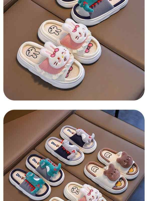 ルームシューズ キッズ 男の子 女の子 子供 恐竜柄 キャラクター かわいい 春 秋 厚底 綿麻 麻素材 通気性 滑り止め EVA底 快適 保温 オープントゥ 室内履き スリッパ 親子 ファミリー 男女兼用