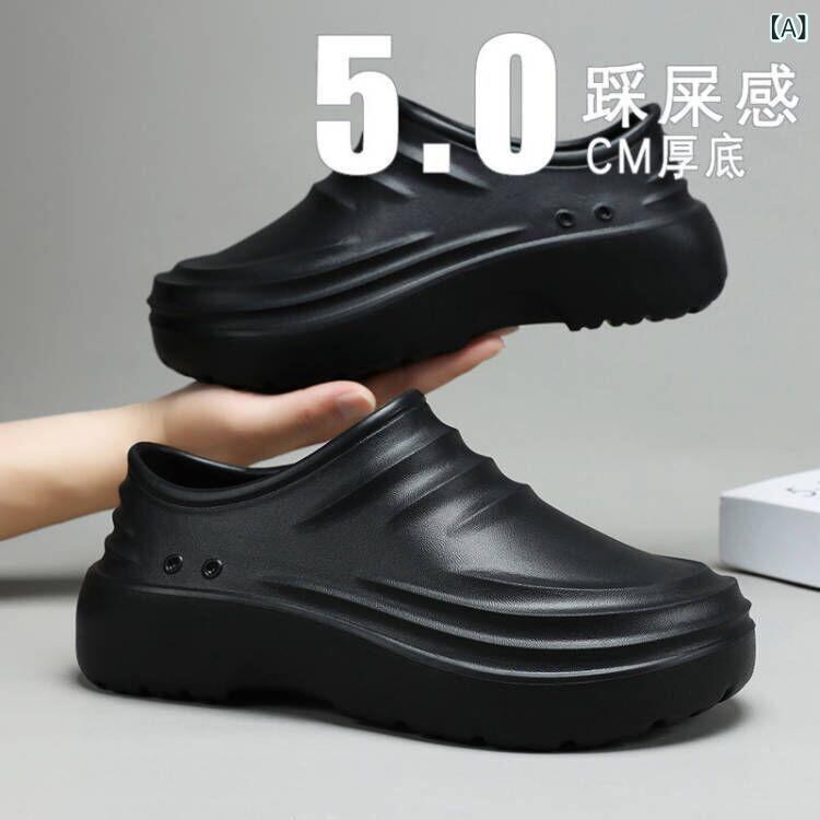 レインシューズ メンズ 男性用 コックシューズ 滑り止め 防水 EVA素材 軽量 業務用 耐油 レストラン ホテル 作業靴 オールシーズン対応 丸いつま先 厚底 一体型 スリッポンタイプ