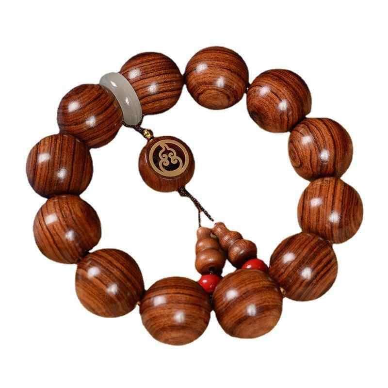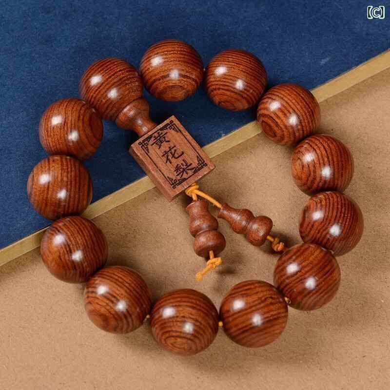 数珠ブレスレット 男女兼用 大葉黄花梨 紅木 天然木 銘木 磨き仕上げ アクセサリー エスニック ファッション小物 腕輪 開運アイテム