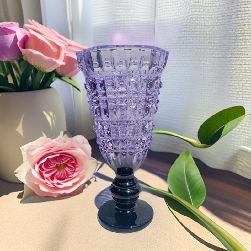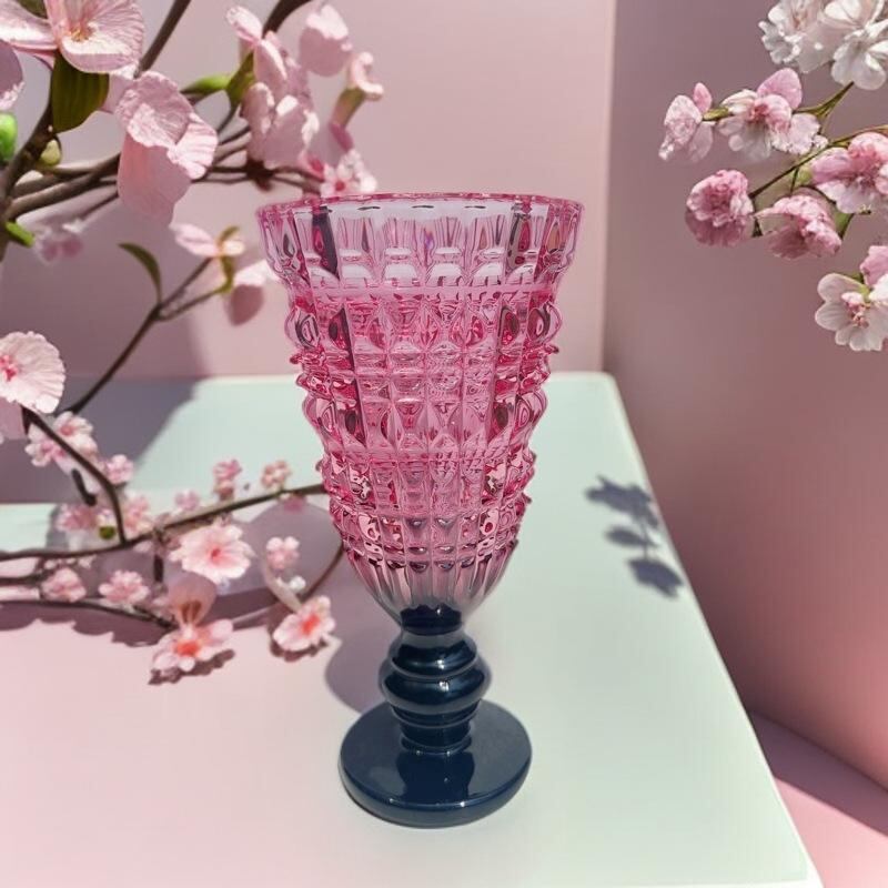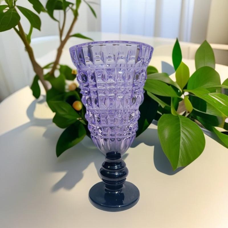 花瓶 ヨーロピアン 高級感 ガラス製 脚付き フラワーベース 広口 カラフル 生花 ドライフラワー対応 床置き フロア インテリア 飾り オブジェ 部屋 リビング 玄関