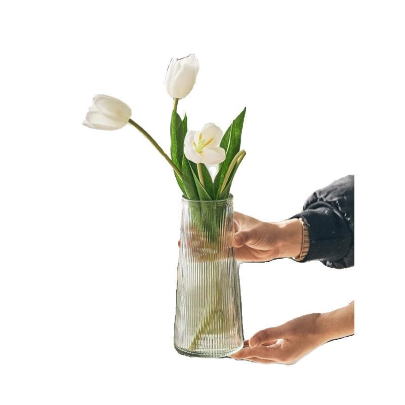 花瓶 高級感 シンプル モダン ヨーロピアン 透明 ガラス製 卓上 生花 バラ 植物 フラワーアレンジメント 氷河模様 縦縞 金彩 インテリア