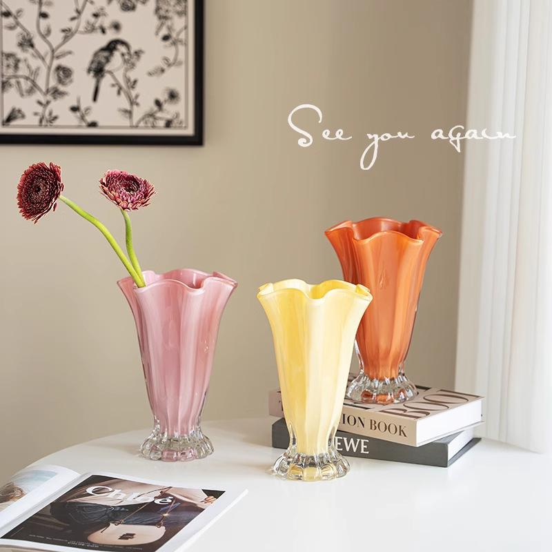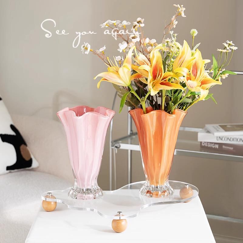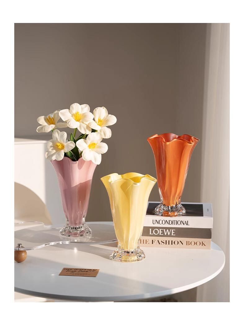 フラワーベース 白菜 ガラス製 高級感 モダン シンプル リビング ダイニング 卓上 置き物 生花 水栽培 ローズ リリー ラッキーアイテム 縁起物 装飾