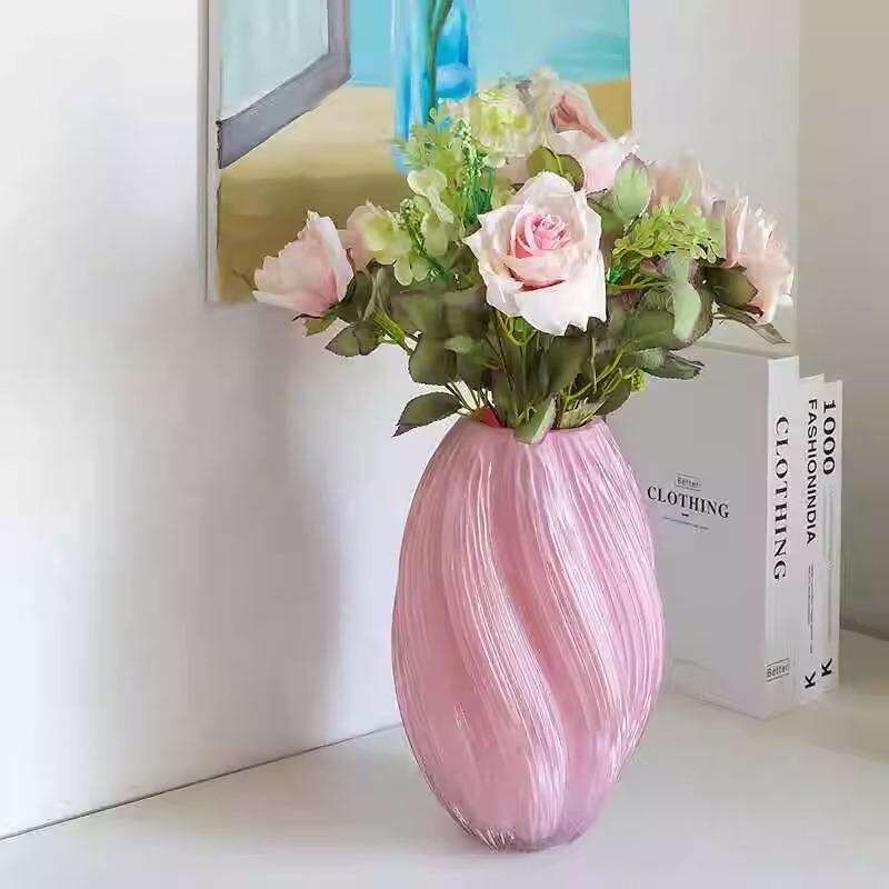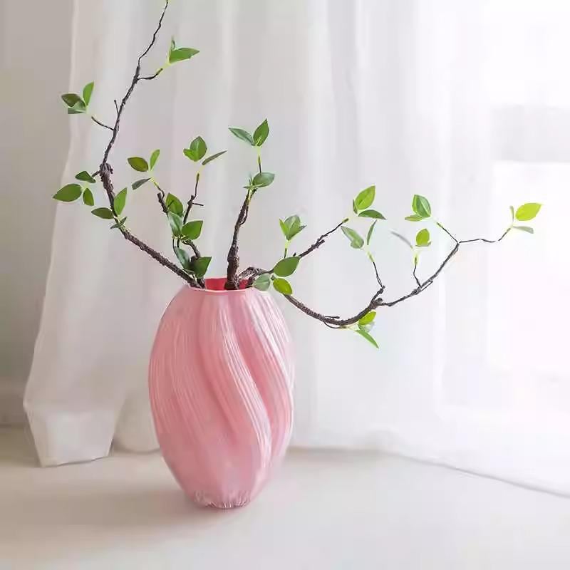 花瓶 ピンク マシュマロカラー ガラス フラワーベース エレガント 高級感 卓上 生花 水栽培用 置物 オブジェ リビング 寝室 玄関 オフィス インテリア雑貨 韓国 北欧 モダン
