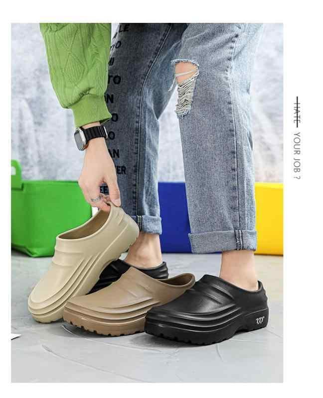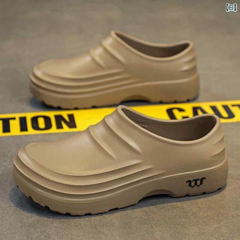 安全靴 メンズ 男性用 多機能 柔らか ソフト 軽量 滑り止め 防水 防油 快適 フラットヒール スリッポン コックシューズ 厨房作業靴 EVA素材 ローカット ラウンドトゥ カジュアル オールシーズン