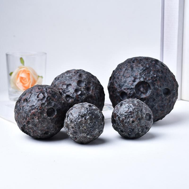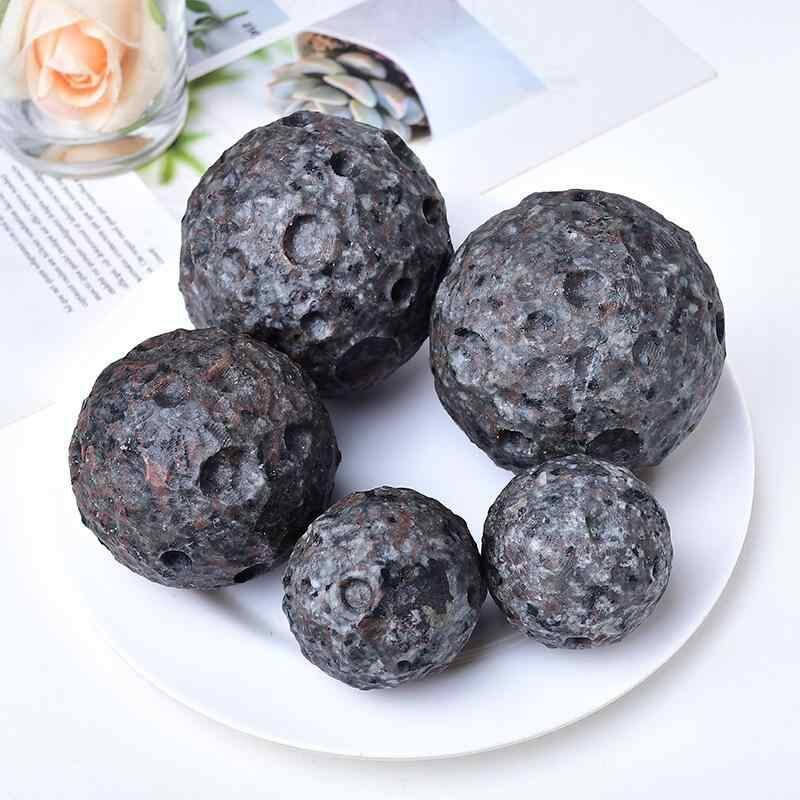 天然石 クリスタル オブジェ 火焰石 ムーン 月型 球体 卓上 デスク インテリア 置物 飾り キッズ 子供向け グレー 灰色
