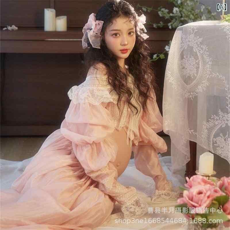 撮影用衣装 レディース マタニティ フォトスタジオ 上下セット 純欲風 フレンチスタイル フェミニン エレガント ポートレート 記念写真 妊婦 記念日 オケージョン 舞台衣装 ポリエステル フリーサイズ