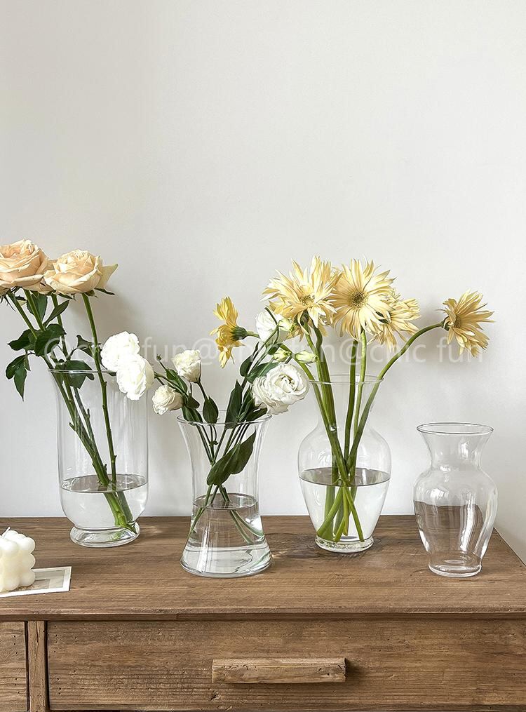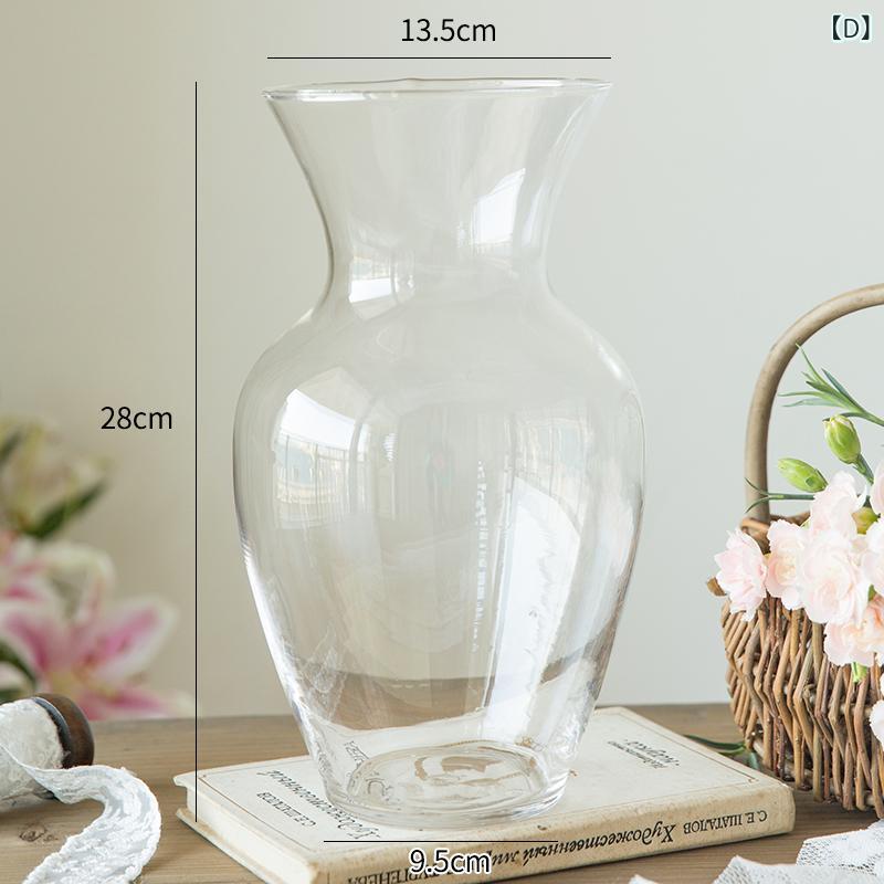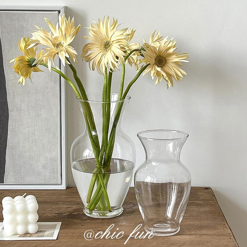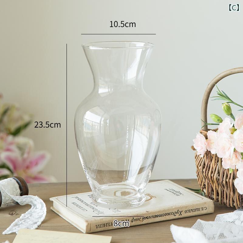 ガラス花瓶 北欧風 透明 シンプル モダン リビング置物 生け花 ドライフラワー 水栽培 広口 フレンチスタイル レトロ アンティーク 高級感 小型 花器