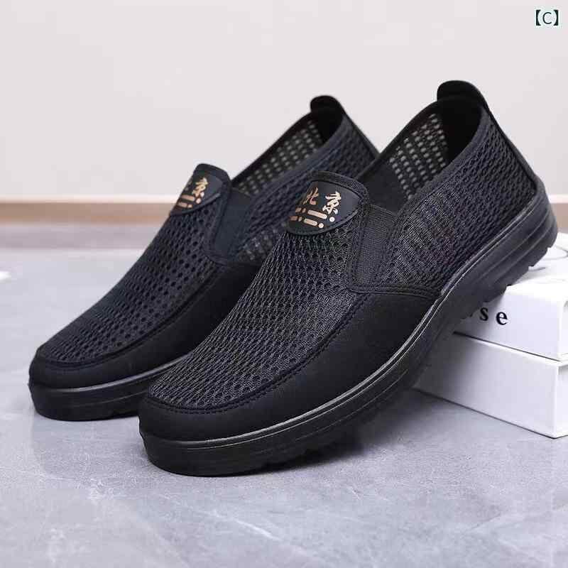 シューズ メンズ 男性 中高年向け 北京布靴 ポリウレタン 軽量 スリッポン メッシュ 通気性 アッパー 布製 ラウンドトゥ フラットヒール 夏用 カジュアル 普段履き ウォーキング 快適