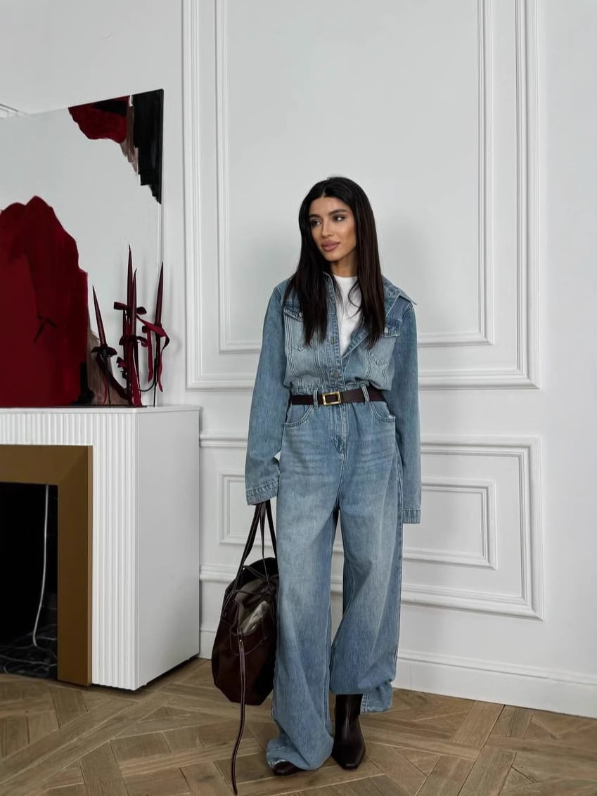 オールインワン レディース デニム つなぎ サロペット カジュアル ゆったり ルーズ レトロ 個性的 高級感 欧米風 綿 コットン ストレッチ 伸縮性 長袖 ハイウエスト ロングパンツ ブルー 普段使い リラックス ストリートファッション