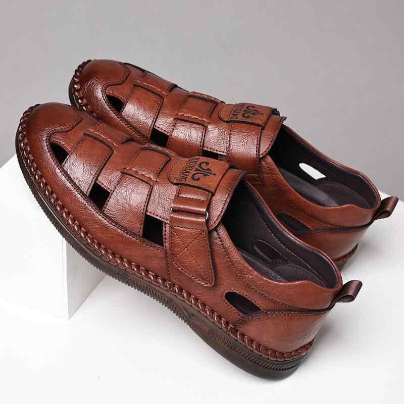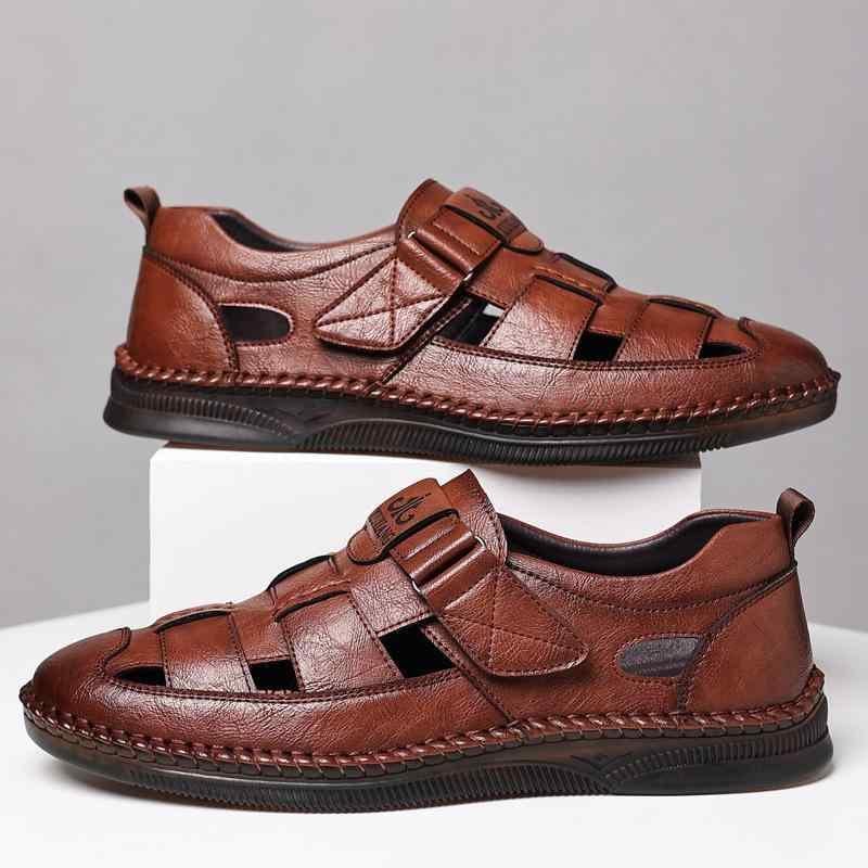 サンダル メンズ 男性用 夏用 中高齢向け お父さん フェイクレザー 革サンダル パンチング つま先保護 通気性 蒸れない 軟底 軽量 滑り止め ベルクロ 普段使い カジュアル リゾート 歩きやすい 履き心地抜群
