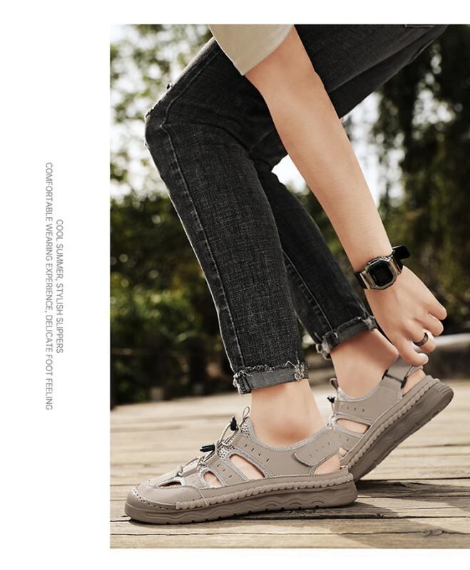 サンダル メンズ 男性用 夏用 新作 外履き カジュアル 通気性 運転用 ドライビング ビーチ 海辺 アウトドア 滑り止め 防滑 超繊維 合成皮革 ゴム底 ブラック サンドカラー 赤茶色
