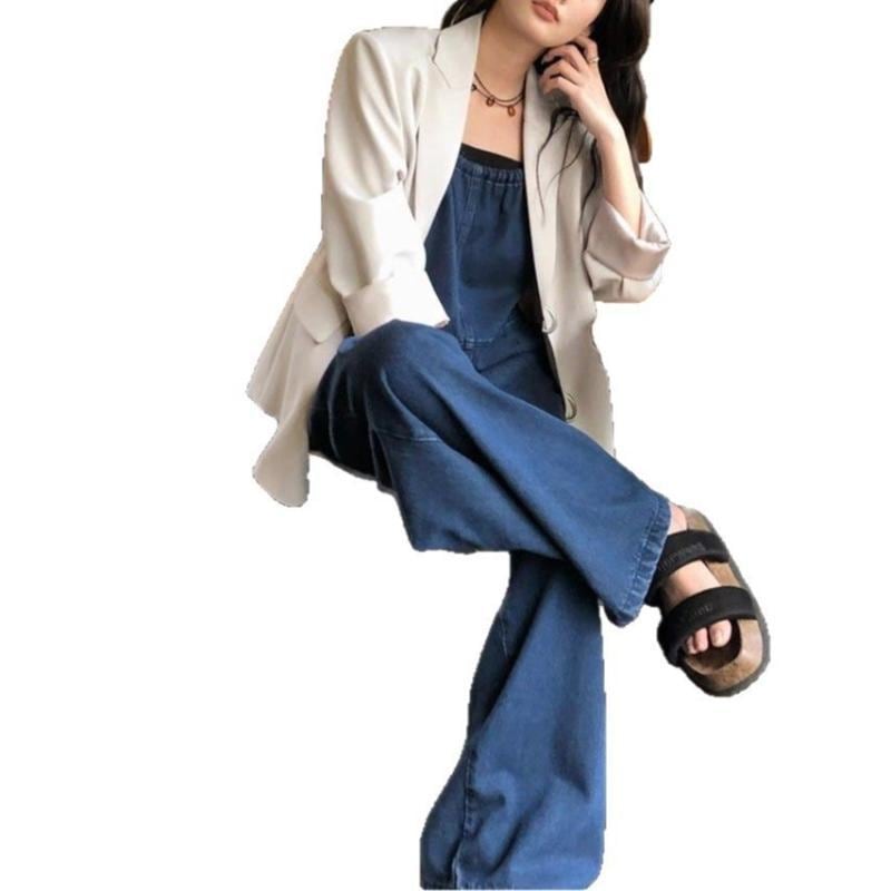 デニム オーバーオール レディース テンセル綿混紡 アクリル混 酵素ウォッシュ ゆったり ワイド ストレート 微ストレッチ オールインワン 大人カジュアル ブルー