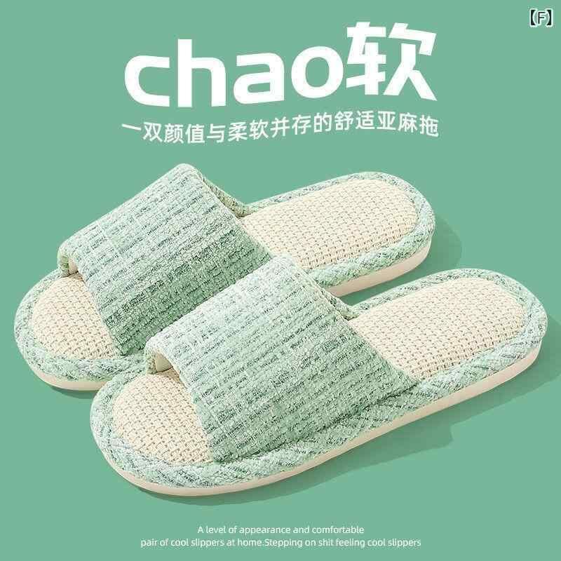 スリッパ レディース メンズ カップル ペア ルームシューズ 室内履き 麻 リネン 綿麻 厚底 クッション 柔らかい 履き心地 通気性 滑り止め オールシーズン マッサージ機能 一字型 ホワイト ブラック ライトブルー