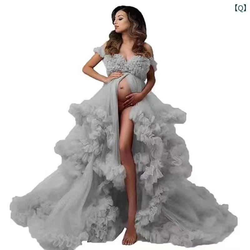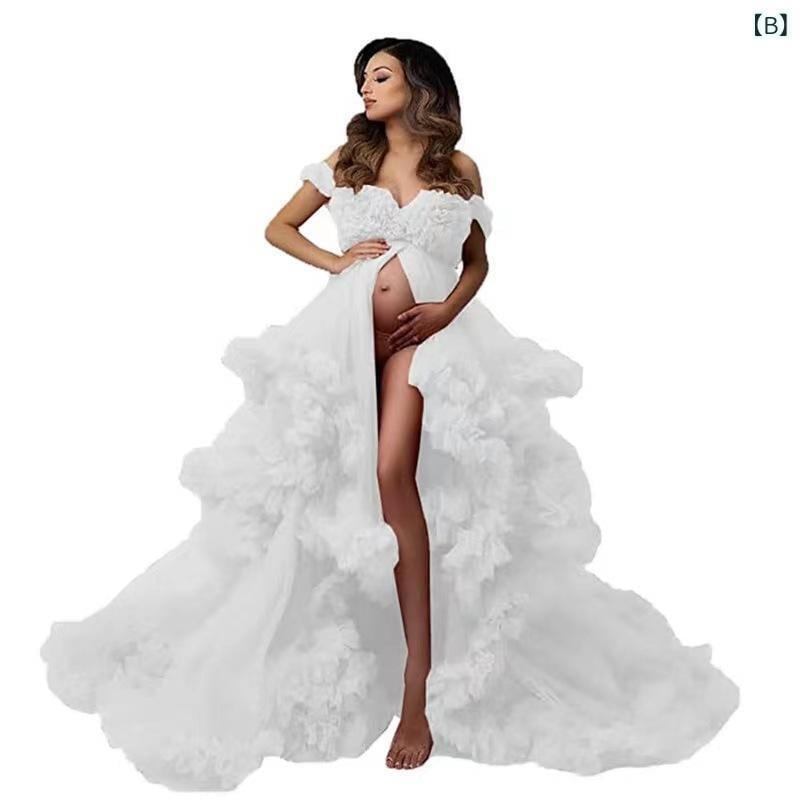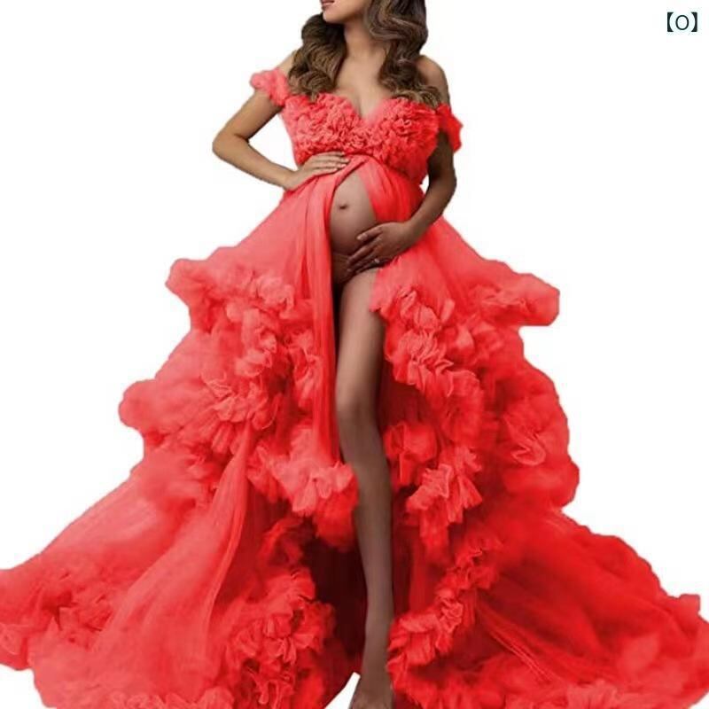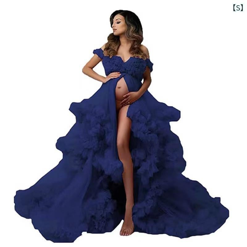 マタニティドレス ウェディングドレス フォトウェディング 撮影用 チュール シースルー 前スリット ハイウエスト 体型カバー ロングドレス エレガント ボリュームスカート Aライン ノースリーブ キャミソール トレーン