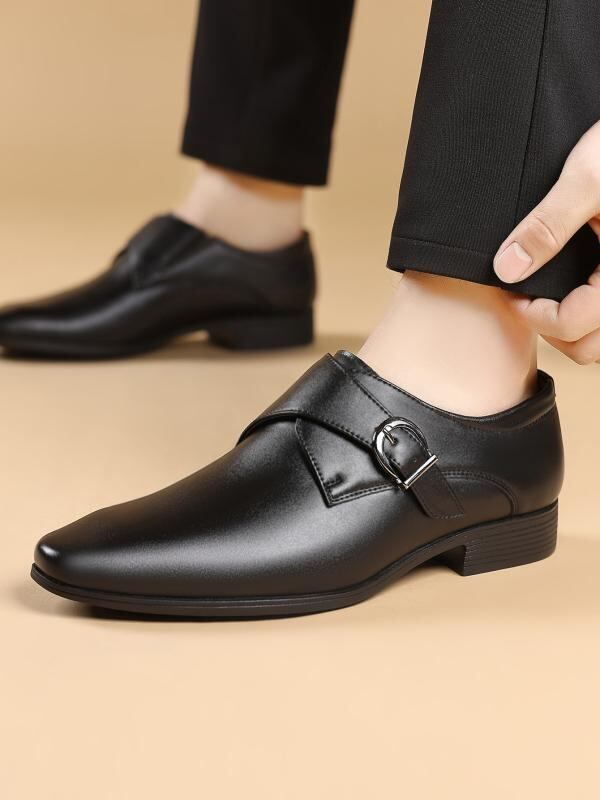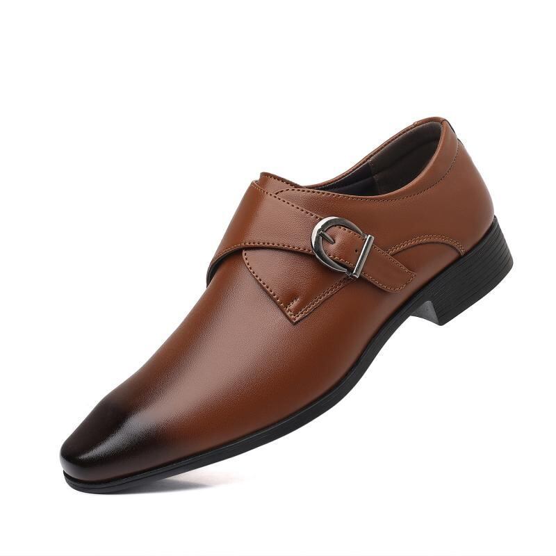 ビジネスシューズ メンズ ポインテッドトゥ バックル メタルバックル 革靴 ヨーロピアンデザイン 人工PUレザー ゴム底 ブラック ワインレッド ブラウン 通勤 オフィス フォーマル ドレスシューズ