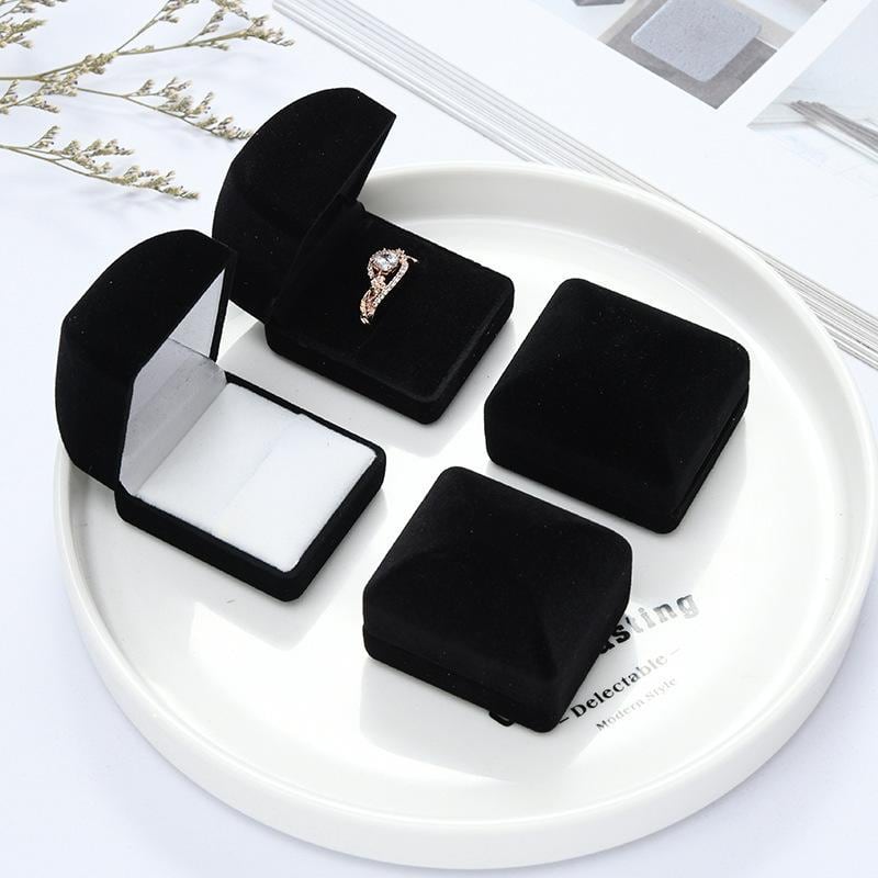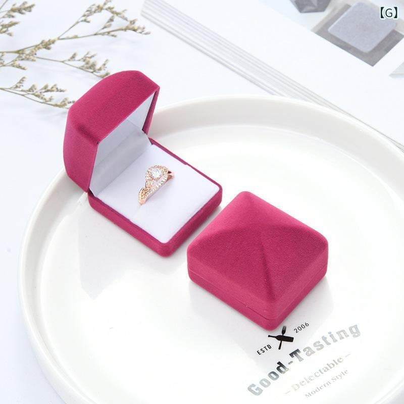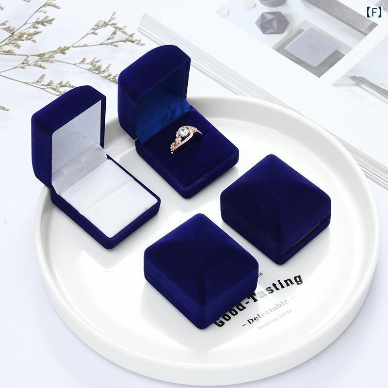 ジュエリーボックス 高級感 フロッキー加工 ベルベット調 リング ピアス イヤリング ブローチ収納 アクセサリーケース ギフトボックス プラスチック製 ブラック レッド ワインレッド ロイヤルブルー ピンク系