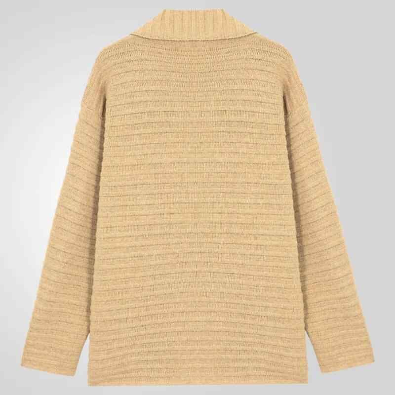 ニット メンズ 男性用 カーディガン セーター ミドル丈 襟付き 長袖 ゆったり オーバーサイズ マシンウォッシャブル ポリエステル カジュアル タウンユース 冬物 カーキ