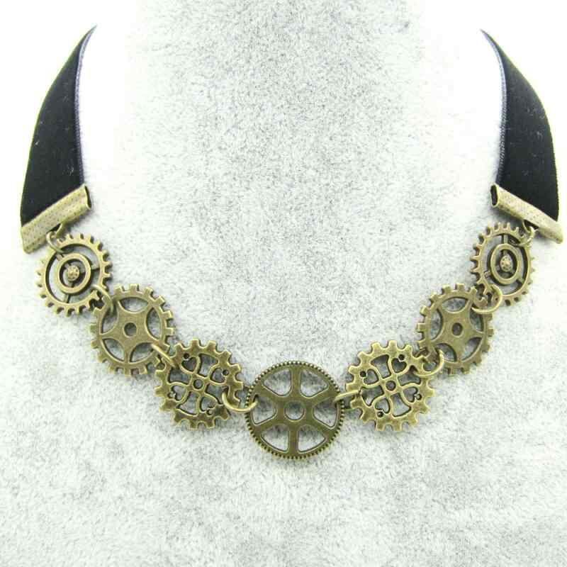 ネックレス レディース スチームパンク チョーカー 歯車 ギア ショートネックレス レトロ アンティーク 個性的 合金製 スエード調 カジュアル ゴシック 古銀 古金