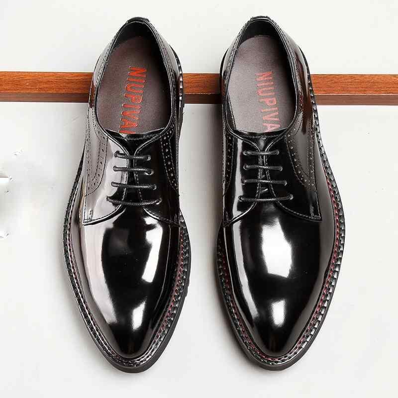 革靴 メンズ シークレットシューズ 牛革 レザー 厚底 ラバーソール 通気性 光沢 エナメル ポインテッドトゥ ローカット レースアップ ビジネス フォーマル 結婚式 披露宴 通勤 オフィス パーティ 紳士靴 ブラック 黒