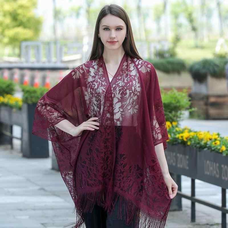 ショール レディース 透かし編み レース 羽織り 大判 UVカット ポリエステル 春夏秋 ミドル丈 フォーマル チャイナドレス トラベル リゾート ビーチ