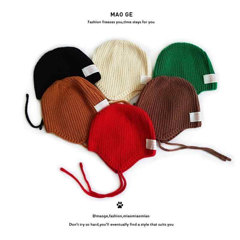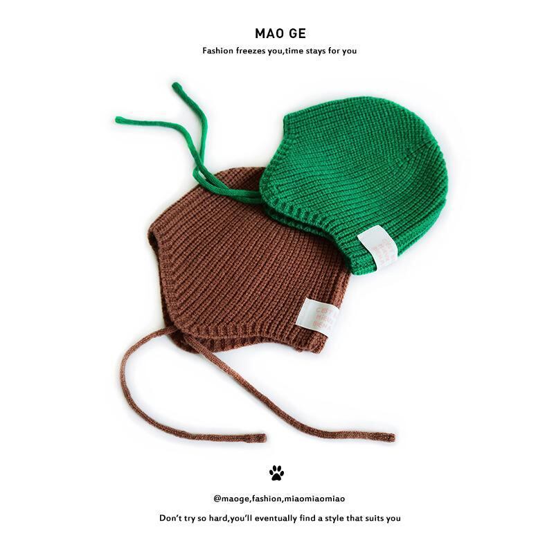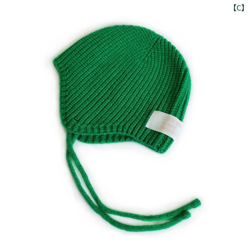 帽子 キッズ 子供 男の子 女の子 ベビー 紐付き 耳あて付き ニット帽 アクリル 防寒 保温 あったか 防風 冬物 冬用 かわいい おしゃれ 黒 赤 緑 ベージュ コーヒー 焦げ茶