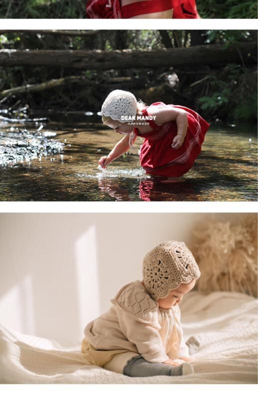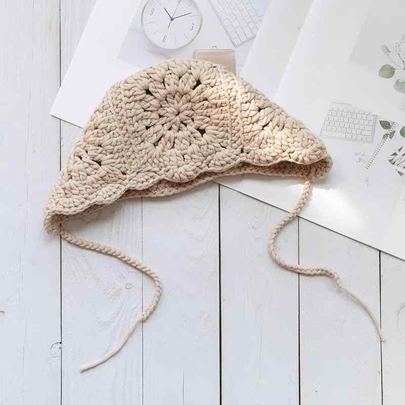 ニット帽 ベビー 新生児 赤ちゃん 乳幼児 男の子 女の子 男女兼用 手編み ハンドメイド 耳あて付き 耳保護 防寒 帽子 保温性 ナチュラル レトロ 韓国風 秋冬 ポリエステル ベージュ