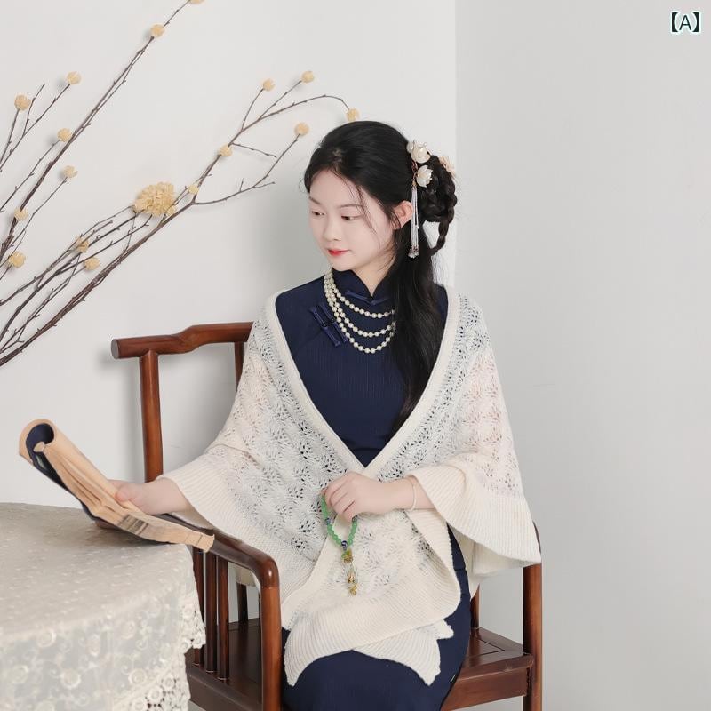 ショール レディース 三角 トライアングル カーディガン ケープ 羽織り オフホワイト アイボリー エレガント 優雅 淑女風 レトロ クラシカル ヴィンテージ ポリエステル素材 秋冬春 ドレスアップ フォーマル 結婚式 パーティー 発表会