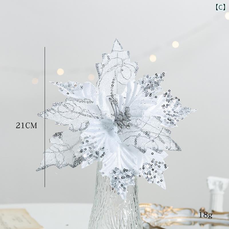 ・種類: 21cm ゴールドラメクリスマスフラワー、21cm シャンパンラメクリスマスフラワー、21cm シルバーラメクリスマスフラワー、21cm レッドラメクリスマスフラワー