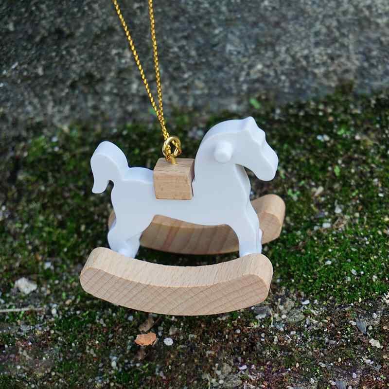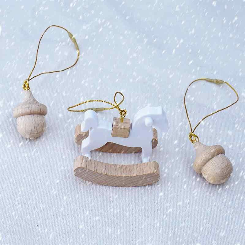 クリスマスオーナメント 木製 ロッキングホース 木馬 どんぐり ドングリ ブナ材 ビーチウッド ハンドメイド 金糸 ゴールドライン 吊り下げ ハンギング かわいい キュート 北欧デザイン 飾り インテリア デコレーション