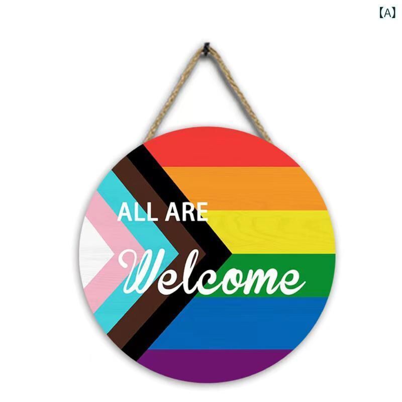 ウェルカムボード 虹 レインボー 木製 ウッド 玄関 ドアプレート 壁掛け 室内装飾 ホームデコレーション おしゃれ モダンアート 彫刻 印刷 研磨仕上げ 手作り風 サインプレート