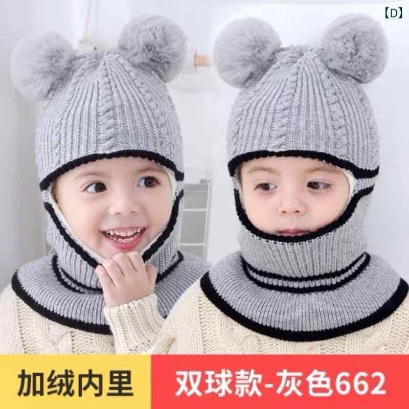 ニット帽 キッズ ベビー 男の子 女の子 ネックウォーマー一体型 厚手 裏起毛 耳当て付き 首元まで暖かい 防寒 保温 あったか 冬物 ポリエステル かわいい 丸型 つばなし セット ベージュ ピンク グレー レッド