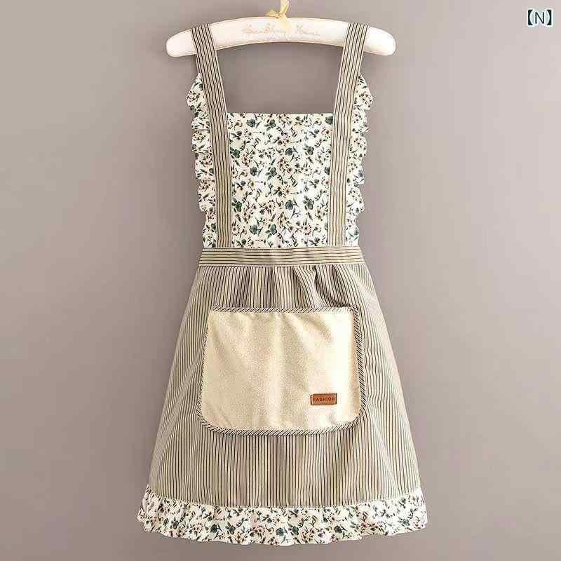 エプロン レディース 女性用 帆布 キャンバス生地 キッチン 料理 調理 家庭用 普段使い 手拭きポケット付き 肩紐付き 撥水 防汚 通気性 プリンセススタイル ワークエプロン