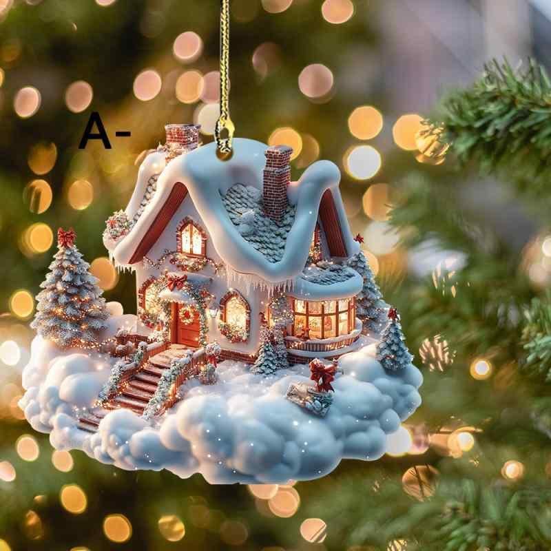キーホルダー クリスマス スノードーム 雪の家 アクリル 冬 プレゼント 贈り物 車用 車内装飾 バッグチャーム ストラップ オーナメント 印刷デザイン アクリル 金糸使用 5点セット 植物モチーフ 個性的なデザイン