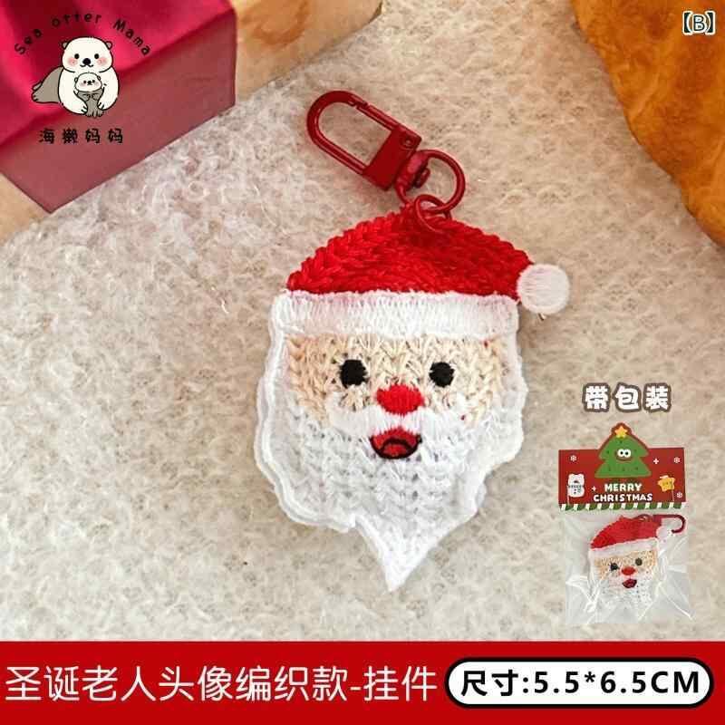・アイテム: キーホルダーチャーム・スタイル: カートゥーン・雰囲気: 清新甜美・柄: クリスマス・モチーフ: 雪の結晶、麋鹿、クリスマスベル、サンタクロース・テーマ: 祝祭・素材: ポリエステル・加工方法: ハンドメイド・デザイン展開: クリスマスソックス編み込み、サンタクロース頭像編み込み、クリスマス麋鹿編み込み、クリスマスツリー編み込み、クリスマス雪だるま編み込み、サンタクロース編み込み・サイズ: 約4.8×5cm・重さ: 約8g