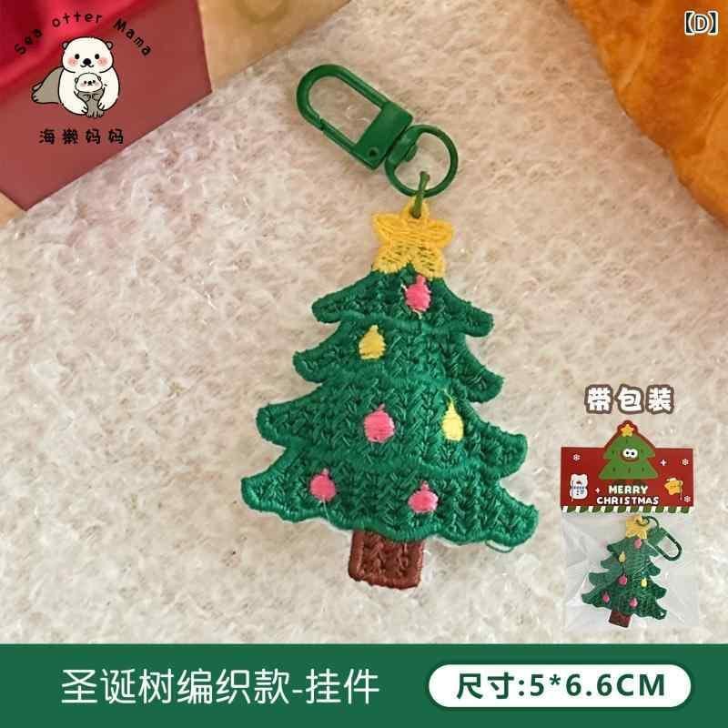 キーホルダー レディース クリスマス オーナメント 編み込み チャーム かわいい サンタクロース トナカイ 雪だるま クリスマスツリー マスコット ポリエステル ハンドメイド風 ギフト プレゼント