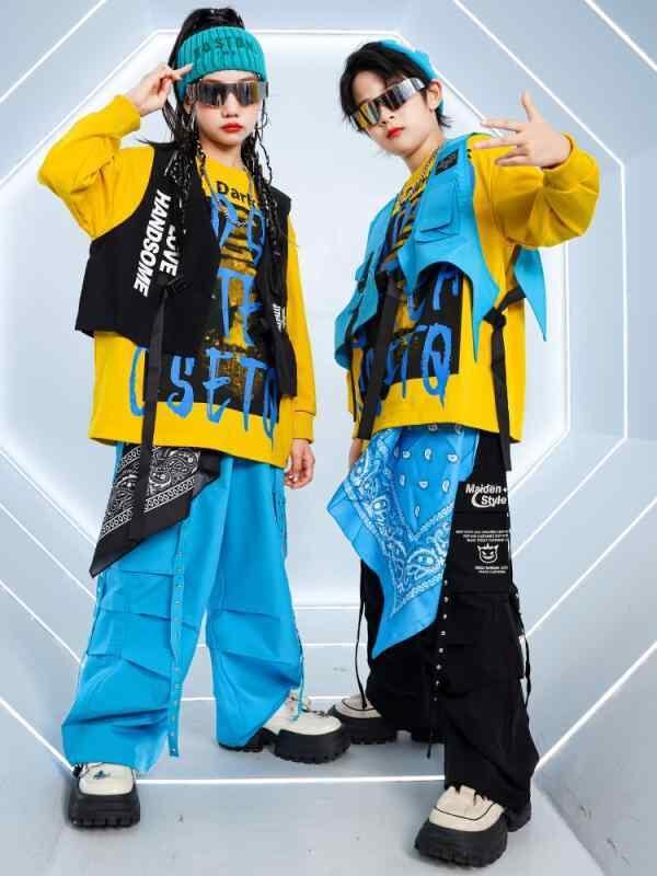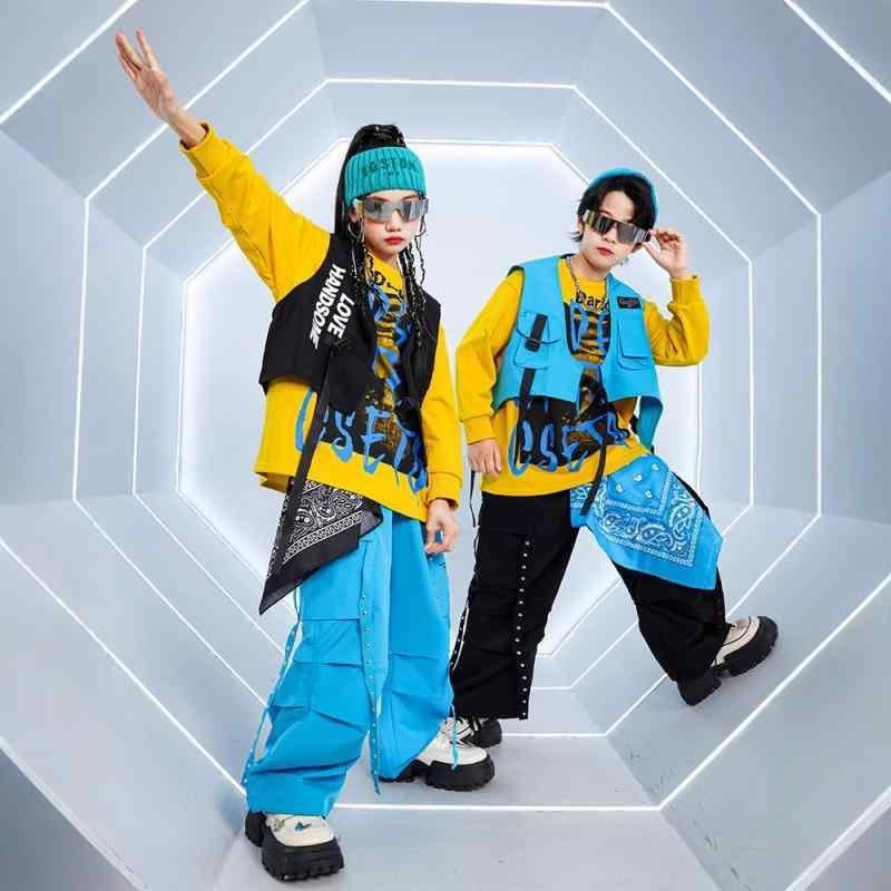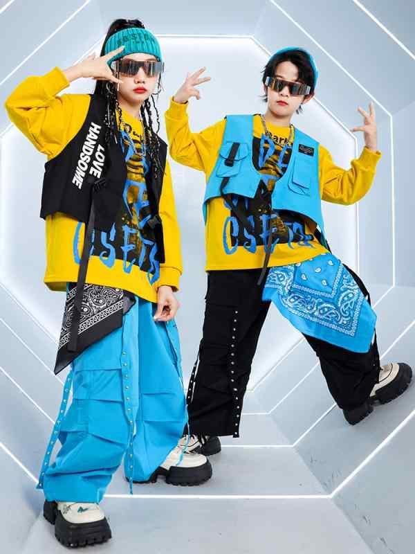 キッズ 男児 女児 ダンス衣装 ヒップホップ ストリート ジャズ ドラム ベスト ジレ セットアップ コットン素材 練習着 ステージ発表会 カジュアル 春 秋 動きやすい