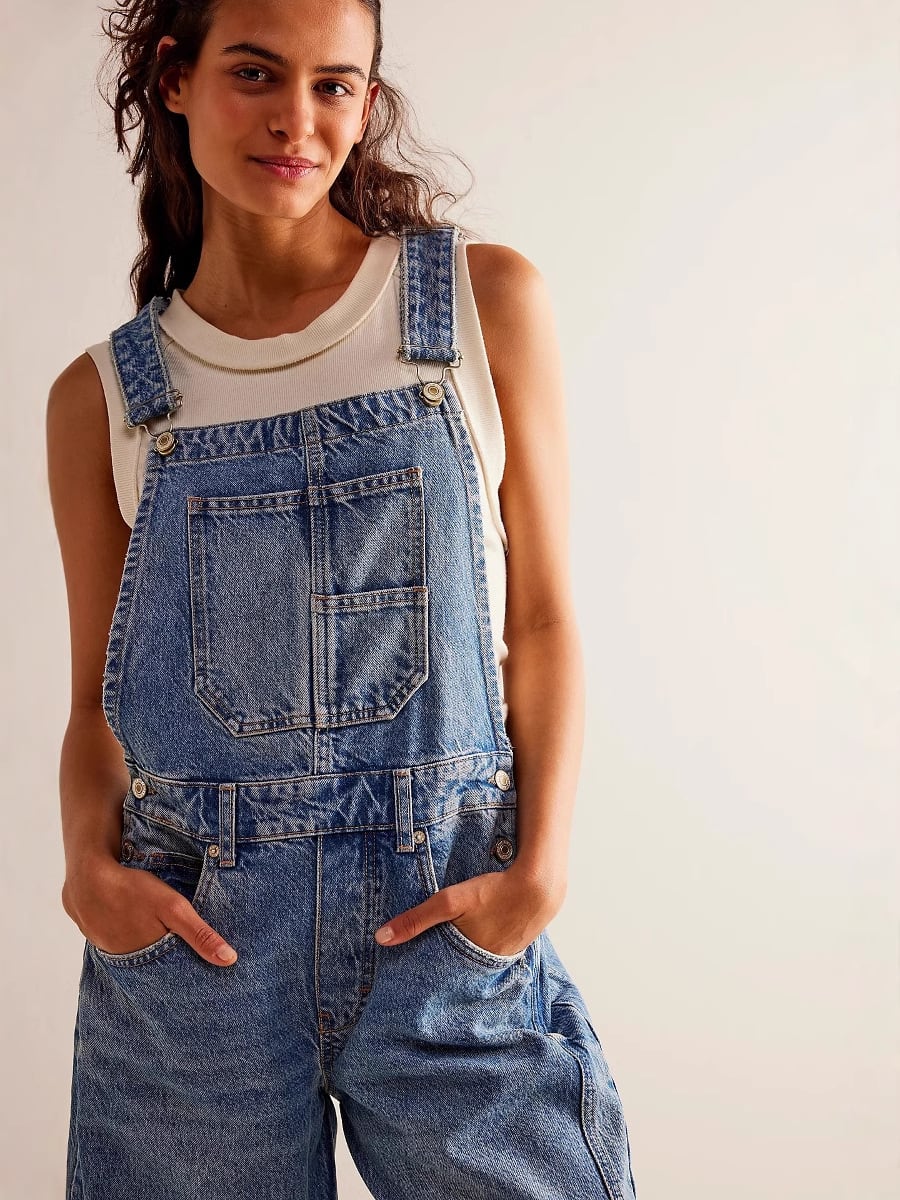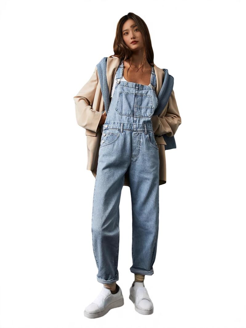 サロペット デニム カジュアル ゆったり ルーズフィット ワイドシルエット ロング丈 ポケット付き ストリートファッション 快適 リラックス オールインワン ブルー ライトブルー ブラック 中厚手 ポリエステル混