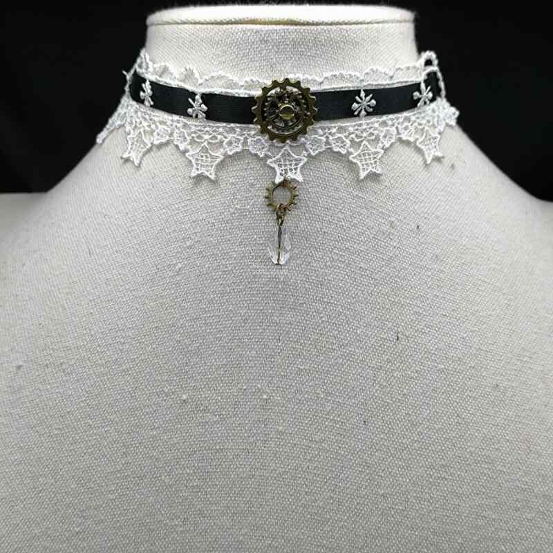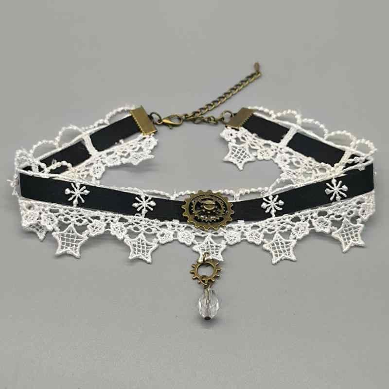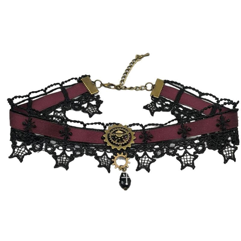 チョーカー レディース レース スチームパンク 星 スター リボン サテンリボン ネックレス 首飾り 白 黒 ワインレッド ダークレッド ゴシック 甘辛ミックス 個性派 複合素材 普段使い | cybercart