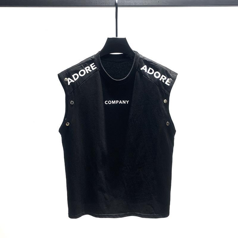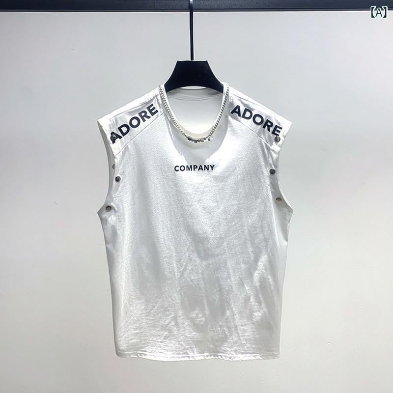ノースリーブ Tシャツ メンズ 男性用 ゆったり ビッグシルエット 英字ロゴ メタリックプリント カジュアル ストリート系 普段使い ポリエステル素材 伸縮性抜群 ホワイト ブラック