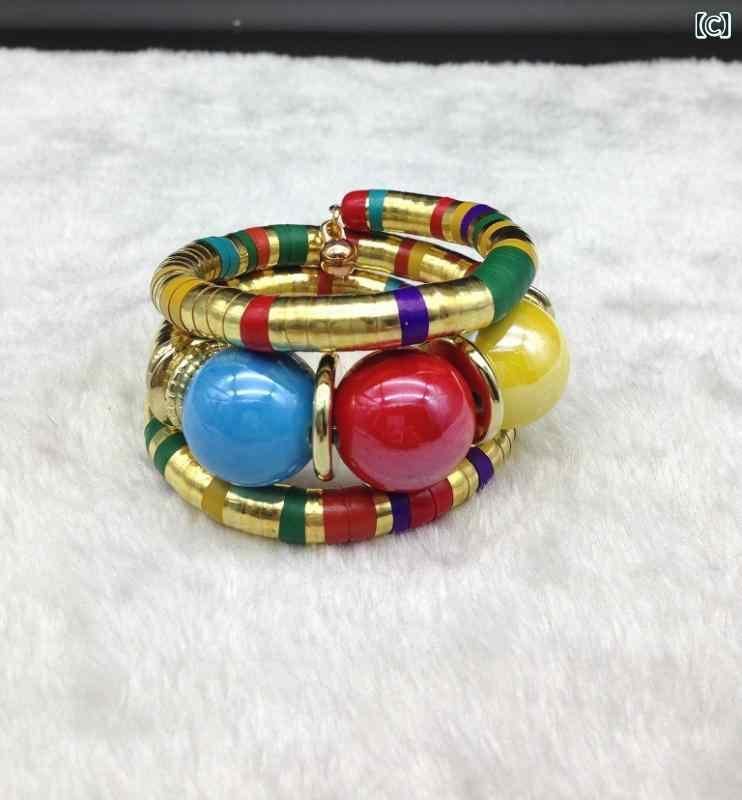ブレスレット バングル ボヘミアン エスニック ビーズ 宝石 スネークチェーン 多層 重ね付け 民族風 レトロ エキゾチック 合金製 イエロー パープル カラフル ヴィンテージ風 円形モチーフ