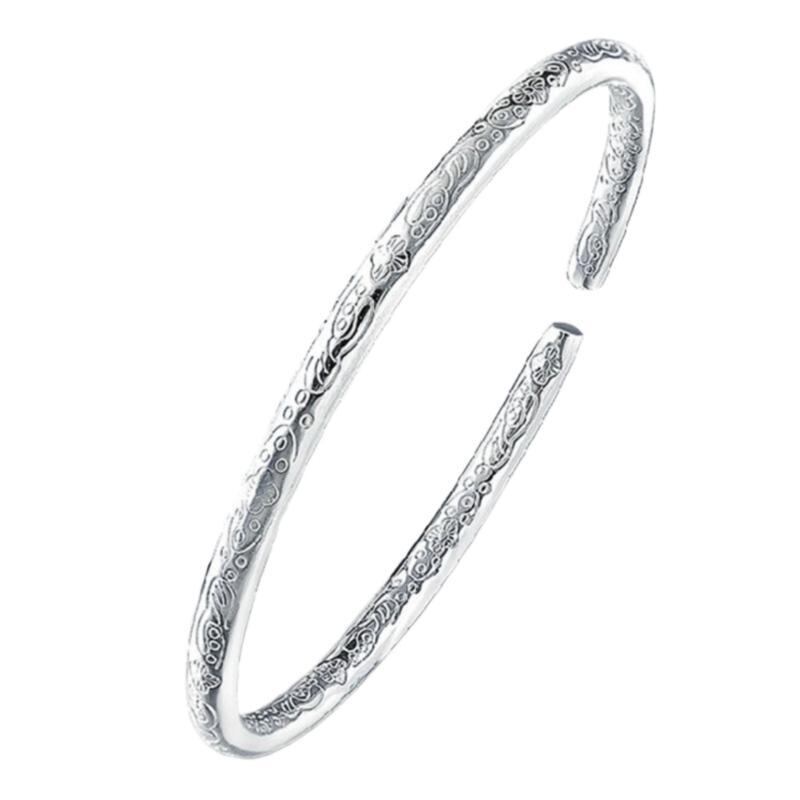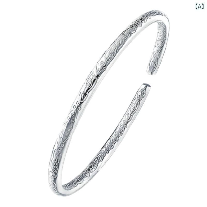 ブレスレット レディース 女性用 レトロ アンティーク ボヘミアン エスニック 祥雲 瑞雲模様 星屑デザイン 彫金 ライン 細工 円形 丸型 銅製 シルバーカラー 個性的 ファッション アクセサリー