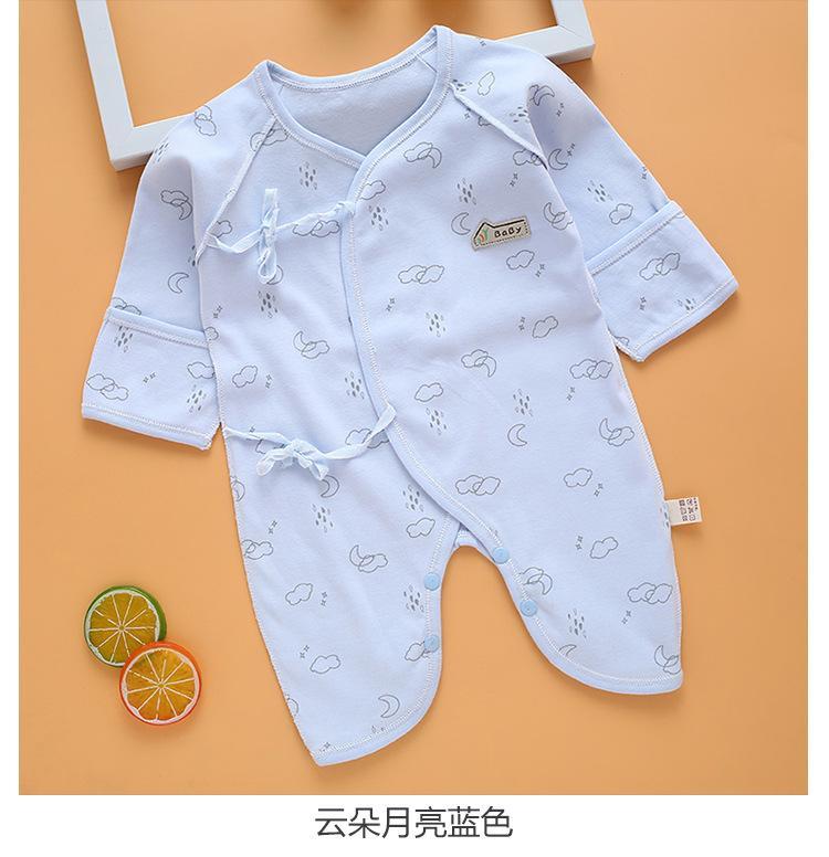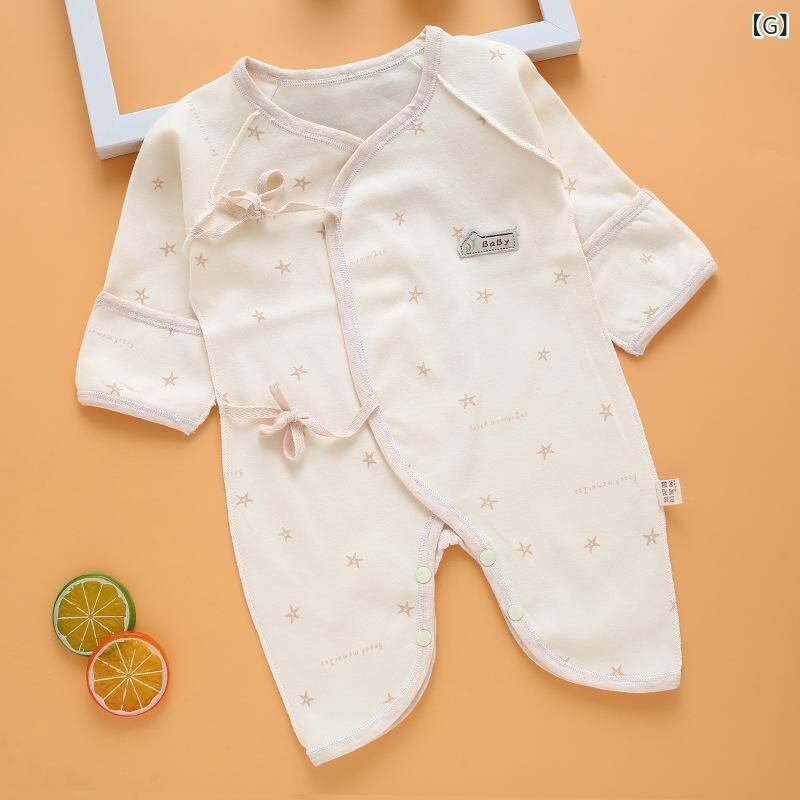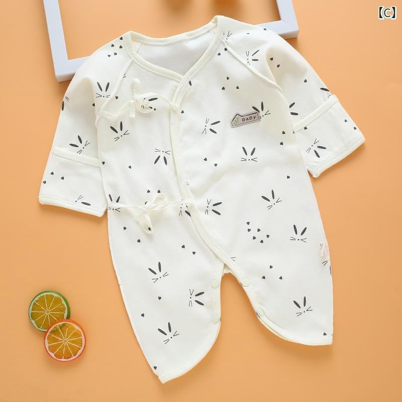 ロンパース 新生児 ベビー 0-3ヶ月 蝶々デザイン カバーオール 長袖 綿98% コットン 無縫製 肌に優しい Aクラス 前開き紐留め シンプル オールシーズン うさ耳柄 雲月柄 星柄 ストライプ柄