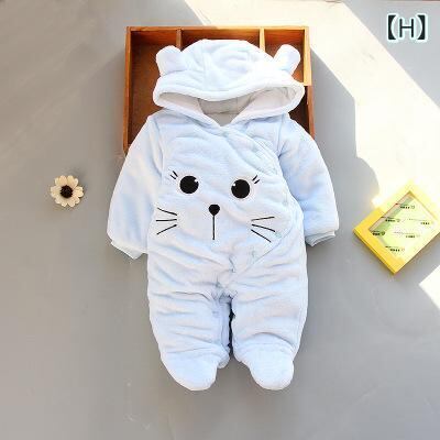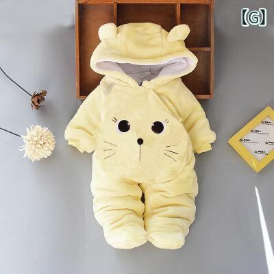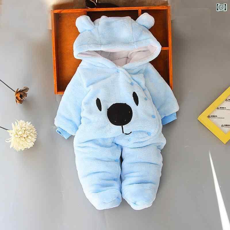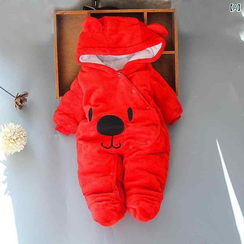 ロンパース ベビー カバーオール サンゴフリース 厚手 あったか 足つき フード付き 前開き スナップボタン アニマル 動物デザイン かわいい 耳付き 秋冬 防寒 新生児 ルームウェア パジャマ カジュアル ユニセックス
