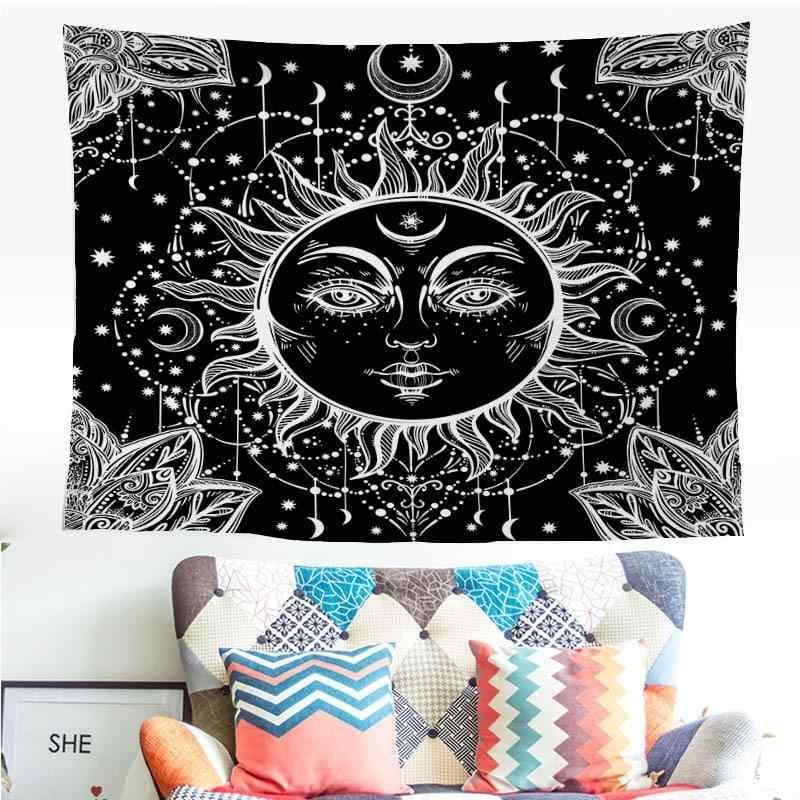 タペストリー ヨーロピアン ウォールデコレーション ボヘミアン エスニック 民族柄 長方形 装飾 背景布 壁掛け ポリエステル製 リビング 寝室 部屋 インテリア 飾り 白 黒 人物柄 手洗い可