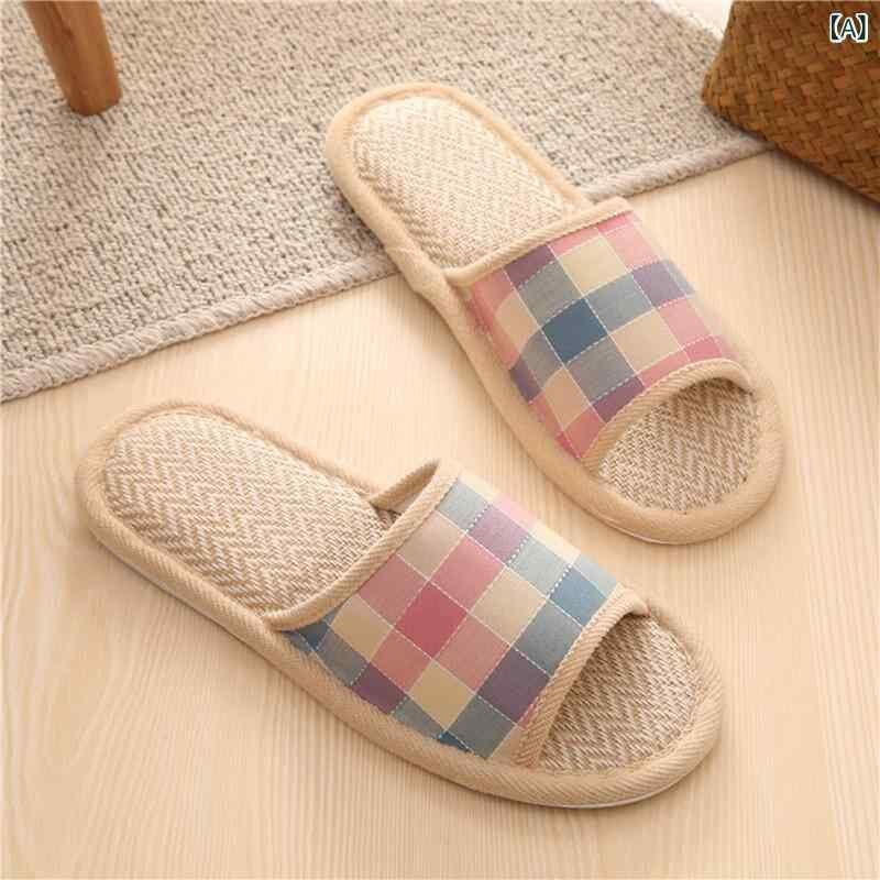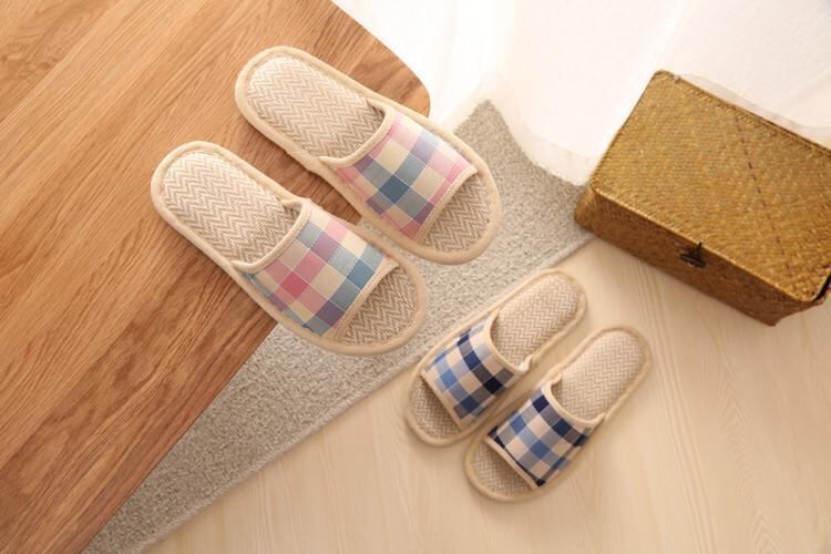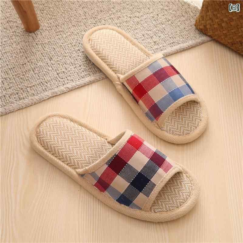スリッパ ルームシューズ 男女兼用 カップル ペア 室内履き 家庭用 来客用 綿麻 コットン リネン素材 オールシーズン 四季 通気性 快適 滑り止め 防滑 フローリング対応