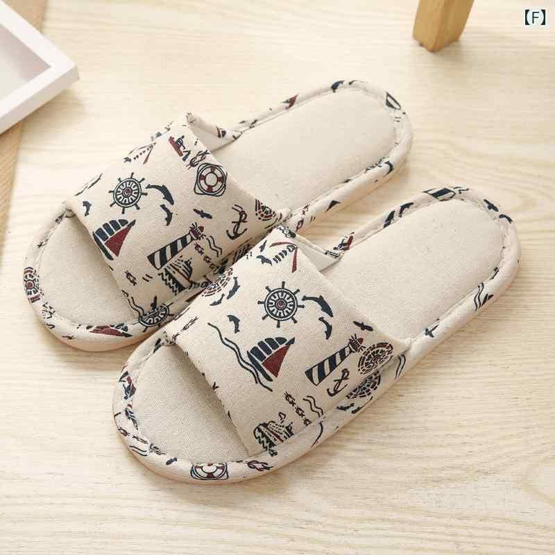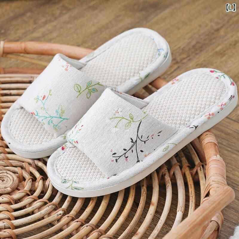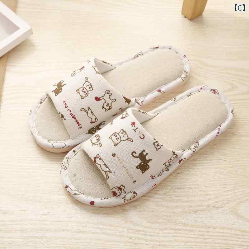 スリッパ ユニセックス 男女兼用 大人 子供 ペアカップル 日系 和風 小花柄 おしゃれ かわいい 麻 リネン 滑り止め 耐摩耗性 軽量 室内履き ルームシューズ 普段使い 夏用 快適 オープントゥ