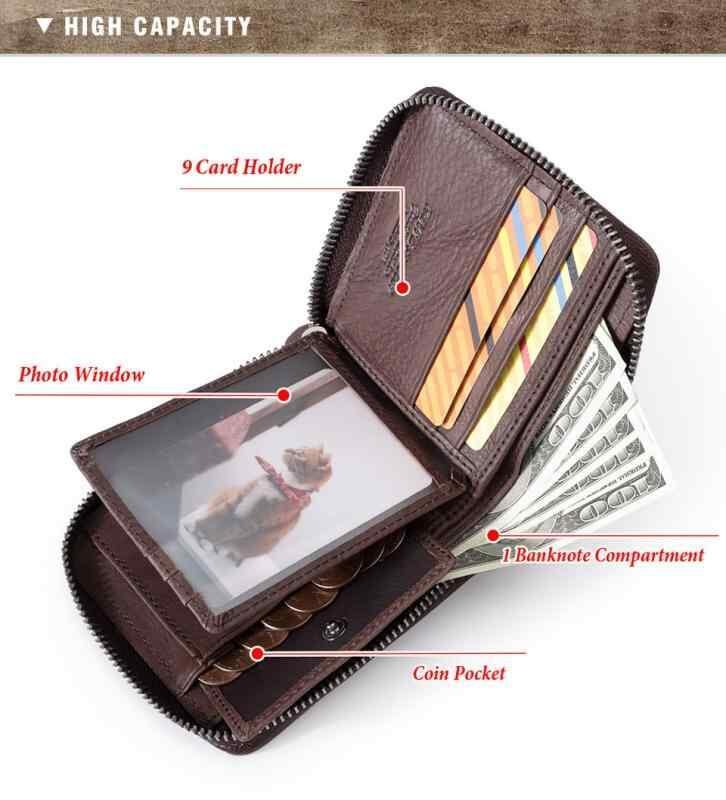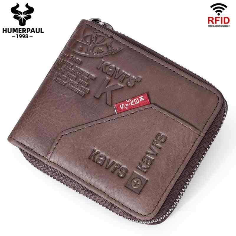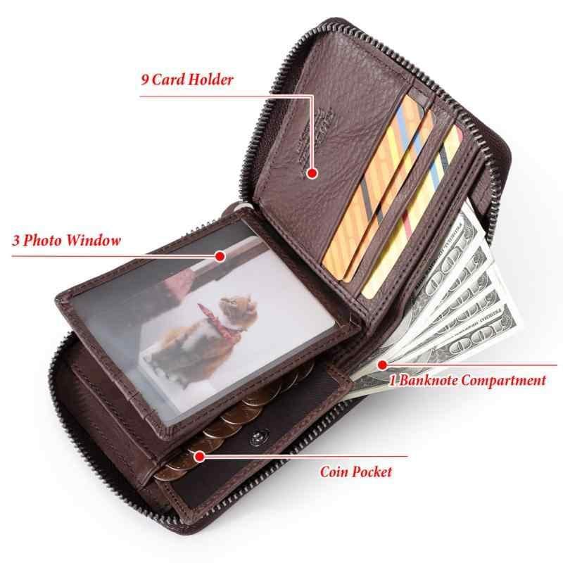 財布 メンズ 男性用 本革 牛革 レザー 二つ折り 短財布 ファスナー ジッパー カードケース カード入れ RFID 大容量 柔らかい ソフト レトロ ヴィンテージ ブラウン 茶色 ステッチ 無地 ポリエステル裏地 軽量 普段使い 日常使い