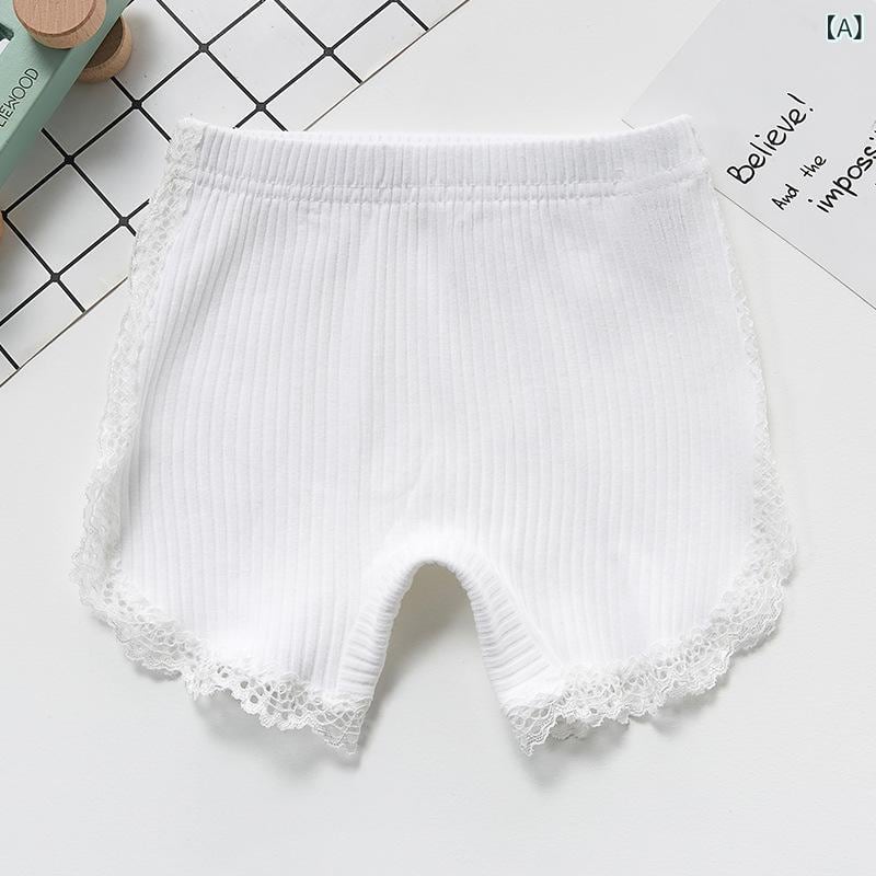 インナーパンツ キッズ 女の子 綿 コットン リブ レース 安全パンツ ショートパンツ 3分丈 透け防止 スカート下 マチ付き 伸縮性 快適 通気性 子供用 白 ピンク パープル グレー 黒 無地 シンプル