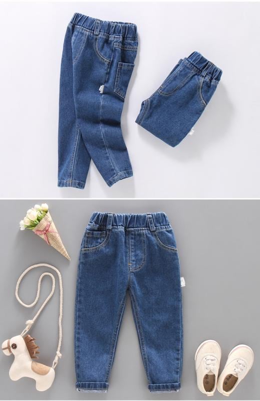 デニムパンツ 男の子 キッズ ジュニア 春秋向け 綿素材 ウエストゴム ミドルライズ 無地 ロングパンツ カジュアル スポーツスタイル 普段使い