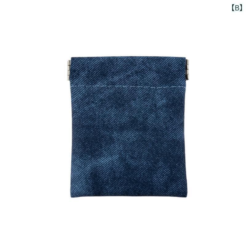 ミニポーチ ユニセックス デニム柄 キーケース コインケース がま口 カードケース 合皮 フェイクレザー コンパクト ミニ財布 小物収納 普段使い 多機能 カジュアル